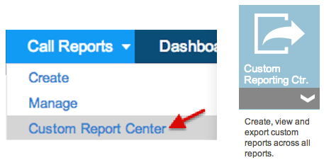 Custom Report Center is a powerful reporting feature that enables users to extract reports across multiple call reports. As the name hints, this feature gives users the option to customize the report structure, i.e. to pick and choose the columns to be displayed in the report. Once the report structure is chosen, filters such as date range, Store Location, User Roles etc can be applied to further refine the result set. Users will also be able to save their favorite custom reports for future use. Custom Report Center feature can be accessed by navigating to 'Custom Report Center' page under Call Report Tab on Admin portal (as shown below).