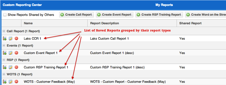 Saved reports will be listed down on the main page of Custom Report Center (like shown below).
