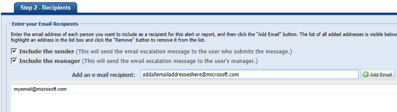 You can include a copy of the message to both the sender (field Rep that submitted the report) and the manager of the Rep.