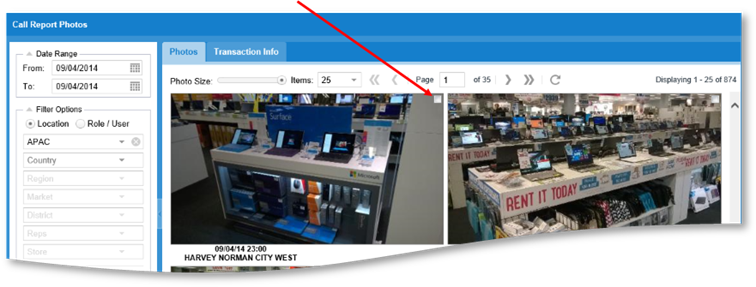 Go to Dashboard >> Photo. A new product filter to isolate photos taken through WOTS and 1:Many Event Reports has been added to a revamped filter set on the left. Now users can choose which type of call report is queried for results. Secondly, Windows Phone as a Product Category was added in the Product filter to help marketing leads and others find Windows Phone photos more easily.