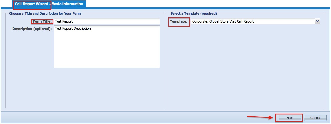 Subsequent pages of call report wizard will take you through user type assignment, store assignment, product assignment and finally furnishing questions, answers, options and conditions. Please see Call Report Assignments and Call Report Field Maintenance for  for details.
