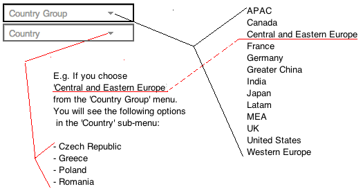 For Global Read Only Users, 'Training Engagements' report will show 2 additional location based filtering options 'Country Group' (A13) and 'Country' as shown below.