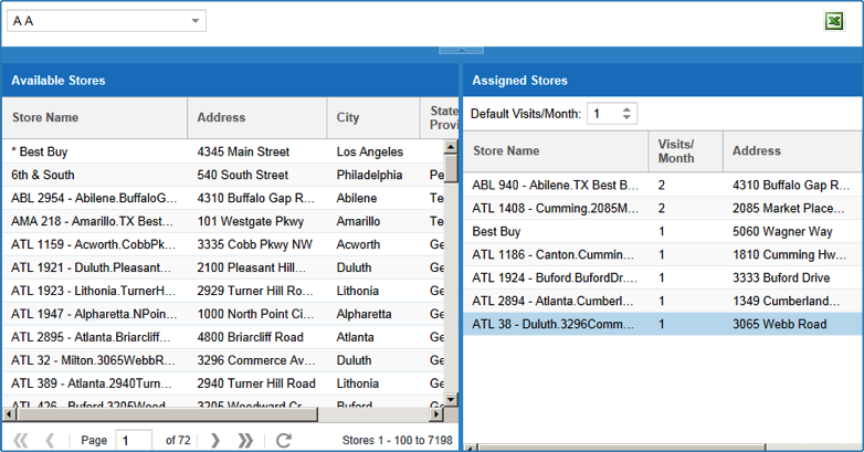It must be noted that store un-assigning action takes effect instantaneously. When a store is un-assigned, the user will no longer be able to see/select that store on his/her REP client app. So, to ensure reps complete all their assigned visits for the current month (unless that is required), please wait until the new month falls before stores are unassigned. Once a month begins, any un-assignment will not take effect until the following month. Any additions will be pro-rated based on how far into the month it is when the change is made.