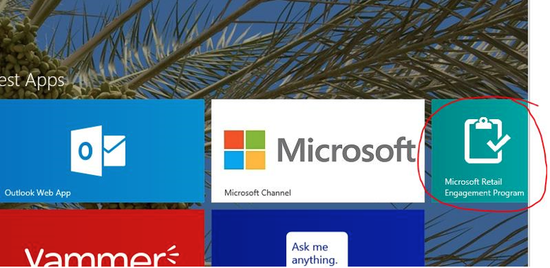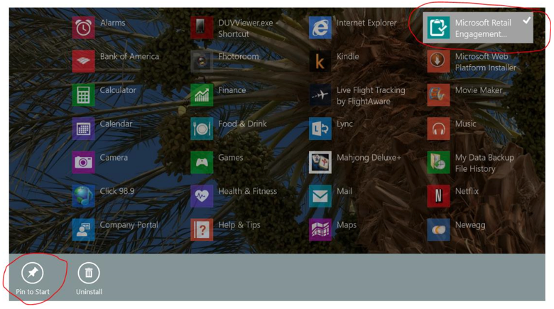 If you are using Windows 8.1, swipe up from the bottom of your Start screen, and you will see the program listed as "Microsoft Retail Engagement Program" with "New" highlighted below it. Right-click on the icon and select "Pin" to start at the bottom. The application will now appear on the far right of your Start screen.